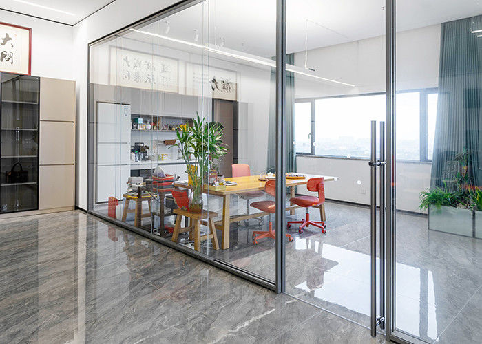 Χρησιμοποιώντας δύο στρώματα γυάλινων τοίχων και ακριβώς κατασκευασμένα στενά πλαίσια αλουμινίου,είναι δυνατόν να δημιουργηθούν φωτεινές και ευρύχωρες διαιρέσεις δωματίων χωρίς να συμβιβαστούν τα πρότυπα προστασίας από ήχο και πυρκαγιάΟι τοίχοι είναι από επίπεδο γυαλί, που τους καθιστά ιδανικούς για γραφεία, αίθουσες, αίθουσες συνεδριάσεων,καθώς και εκπαιδευτικά ή θεσμικά κτίρια που έχουν υψηλή απαίτηση για ηχητικές επιδόσειςΤο σημαντικό κενό μεταξύ των διπλών στρωμάτων γυαλιού επιτυγχάνει μείωση θορύβου έως και 40+ ντεσιμπέλ, εξασφαλίζοντας μια ήσυχη και παραγωγική ατμόσφαιρα.Αυτά τα γυάλινα τείχη μπορούν να χωρίσουν διαφορετικά τμήματα διατηρώντας ένα οπτικά ανοιχτό και ακουστικά ήσυχο χώρο.